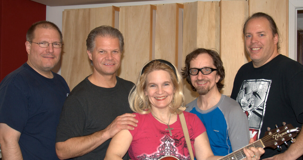 It all happened at our newly refurbished home studio: KIP Productions, home of Jharck Records in Billerica, MA from March 21-25, 2012. Present were Ralph Kinscheck on Keys and cheif engineer-producer, Gary Gibbons on drums (in from LA, CA), Chris Gibbons on bass (up from Dryden, NY), Johnny V Vicaire on lead guitar and of course me on lead vocal and acoustic guitar! Also here was my Mom. POlly, feeding us and taking care of our twins0 an essential job indeed!