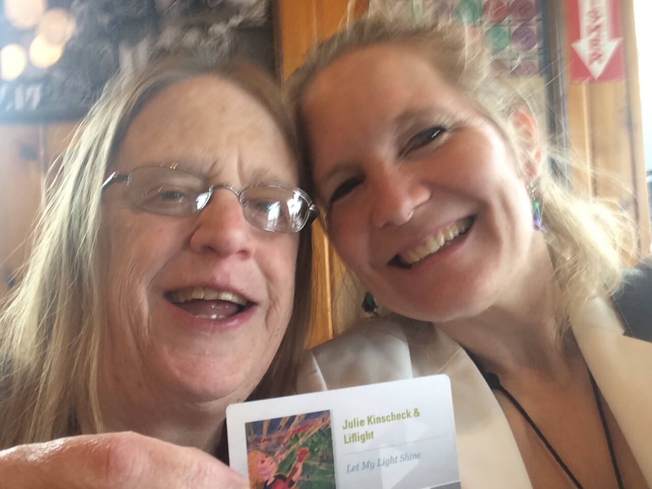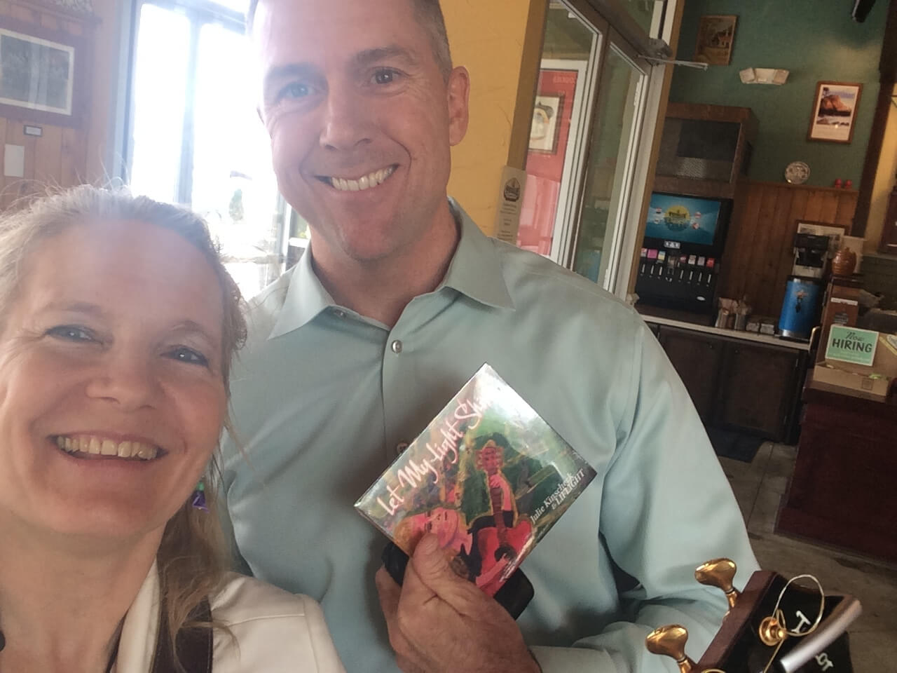 Like I did on Sunday at my show at the Fuse Bistro in Lowell… I was about to sing an original Song called “Love Life Like I Should” from my Let My Light Shine Album. I asked the audience to listen closely to the lyrics. If they could figure out “what is standing behind us as we’re walking through our day?” then they could win a free CD or download card!